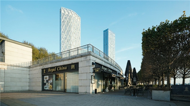 皇朝 Canary Riverside 店依傍泰晤士河畔,窗外灯火与江色相映,波光潋滟。内部空间融合现代雅致与东方意境,柔和的光线与温润的木色,共同营造出清雅含蓄、意境悠长的氛围。宴席区以圆桌布局,布置简约大方,细节中尽显节日的温馨与仪式感。白色瓶身的飞天茅台在灯光下闪耀,与窗外流动的月色相映成趣,令现场气氛倍添雅致。