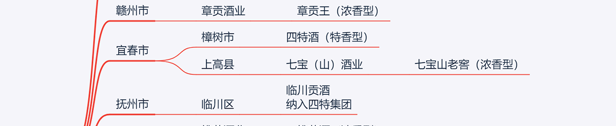 江西是特香型白酒的故乡,四特酒是特香型白酒的典型代表,也是江西省白酒的代表,江西酒企较多,但都局限在江西本省之内。